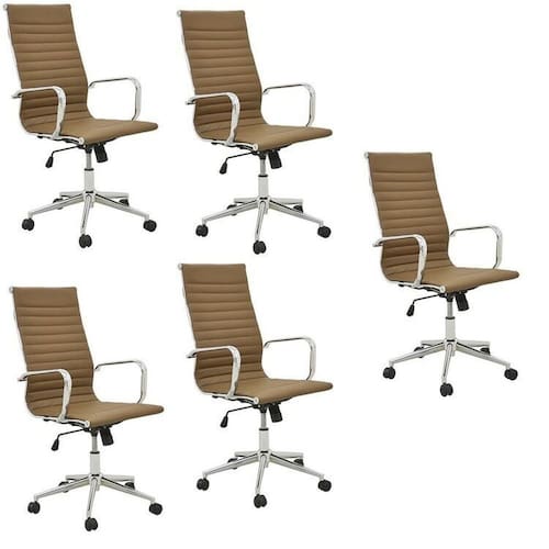 Itens Inclusos: Cadeira, Kit Ferragens e Manual de Instruções. KIT: Sim Largura do Conjunto: 67 cm Linha ou Coleção: Sevilha Marca: Rivatti Material da Base: Aço Possui Apoio para Braços: Sim Possui LED: Não Possui Regulagem de Altura de Assento: Sim Possui Rodízio: Sim Quantidade do Produto: 5 Recomendações de Uso, Manutenção e Limpeza: Uso interno. Não expor ao sol ou umidade. Não exceder a capacidade de peso indicada. Partes em aço cromado não possuem garantia em regiões litorâneas. Para partes em PU: Limpar com pano macio umedecido em solução de água e sabão neutro e secar em seguida. Para partes cromadas: Limpar com flanela seca e macia. Para proteger a peça e manter o brilho sugere-se polimento com cera automotiva. Não utilizar produtos químicos ou abrasivos. Tenha certeza que todos os parafusos estão bem apertados antes de usar o produto. Revestimento do Assento: Poliuretano Revestimento do Encosto: Poliuretano Sistema de Montagem: Encaixe e parafusos Suporta Até (kg): 120 kg Tipo de Cadeira de Escritório: Cadeira Presidente Tipo de Mecanismo da Cadeira: Relax