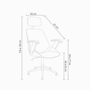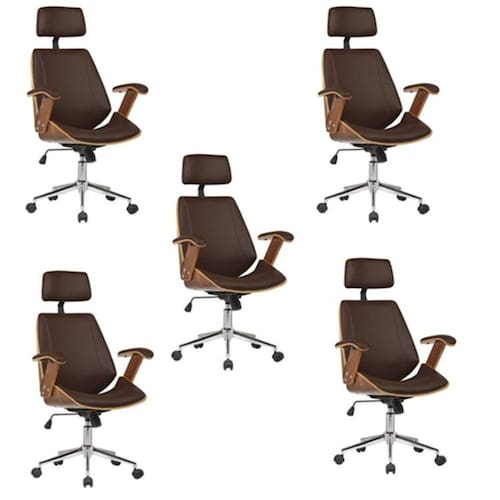 Cadeira office giratória com ajuste de altura e função relax. Estrutura em madeira nogueira compensada, estofada e revestida em Poliuretano. Possui base estrela cromada e rodízios em nylon. Altura do Conjunto: 124 cm Ambiente: null Ambiente Principal: Escritório Cor: Marrom Cor do Produto: Marrom Informação Complementar: 5x Cadeira de Escritório Presidente Giratória com Apoia Cabeça Office Lisboa Marrom Largura: 63 cm Altura: 124 cm Peso: 15 kg Profundidade: 61 cm Necessita Montagem: Sim