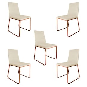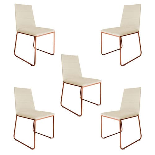 Kit 5 Cadeiras de Jantar Estofada Lille Base Bronze Veludo Bege chegou essa incrível novidade para você, que deseja inovar e decorar o seu espaço com muito Estilo. A Cadeira Lille possui uma matéria-prima de ótima qualidade, garantindo conforto e durabilidade do produto. Possui variações de cores tanto na base e no assento, oferecendo várias opções de escolha para sua decoração.