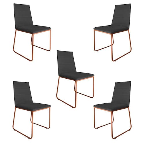 Kit 5 Cadeiras de Jantar Estofada Lille Base Bronze Veludo Cinza chegou essa incrível novidade para você, que deseja inovar e decorar o seu espaço com muito Estilo. A Cadeira Lille possui uma matéria-prima de ótima qualidade, garantindo conforto e durabilidade do produto. Possui variações de cores tanto na base e no assento, oferecendo várias opções de escolha para sua decoração.