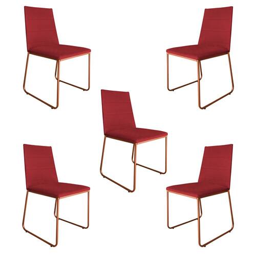 Kit 5 Cadeiras de Jantar Estofada Lille Base Bronze Veludo Vermelho - Montanaris Decor