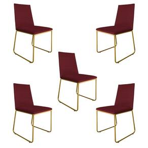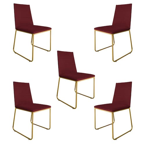 Kit 5 Cadeiras de Jantar Estofada Lille Base Gold Veludo Bordô - Montanaris Decor