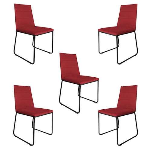 Kit 5 Cadeiras de Jantar Estofada Lille Base Preta Veludo Vermelho - Montanaris Decor