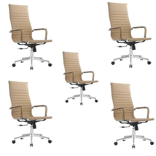 A cadeira Manhattan Presidente é toda revestida em couro ecológico com costuras horizontais, ela também possui sua base e detalhes em aço cromado, o que garante resistência e durabilidade à cadeira! Por possuir seus braços também revestidos em couro ecológico e possuir sistema relax, ela é super confortável para grandes espaços de tempo sentados. Altura do Conjunto: 113 cm Ambiente: null Ambiente Principal: Escritório Cor: Bege Informação Complementar: 5x Cadeira Esteirinha Presidente Giratória Estofada com Rodízios Espresso Móveis Cinza Largura: 56 cm Altura: 113 cm Peso: 12,15 kg Profundidade: 60 cm Necessita Montagem: Sim