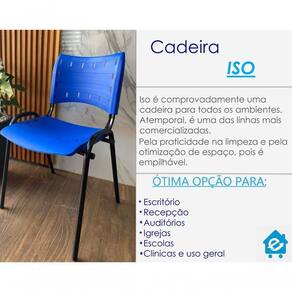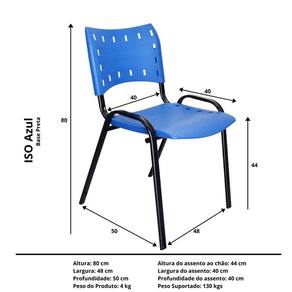 Kit 5 Cadeiras Iso Para Escola Escritório Comércio Azul Base Preta