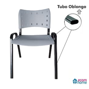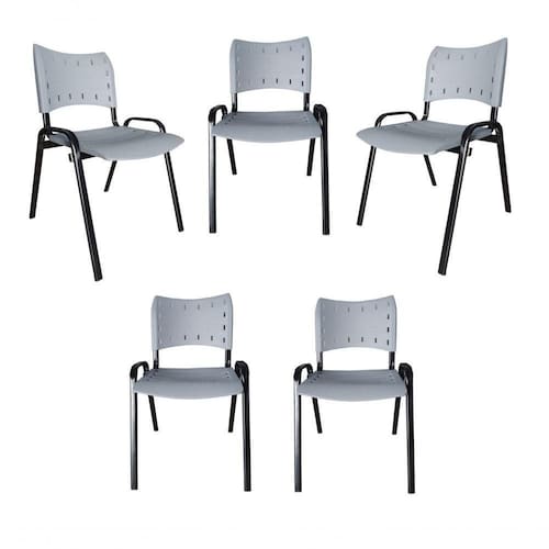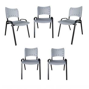 Kit 5 Cadeiras Iso Para Escola Escritório Comércio Cinza Base Preta