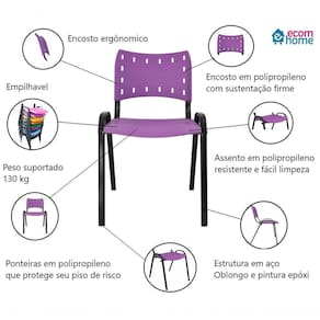 Kit 5 Cadeiras Iso Para Escola Escritório Comércio Roxo Base Preta