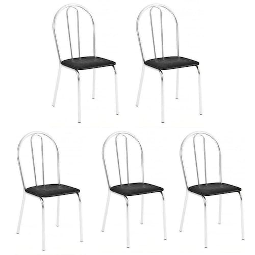 Kit 5 Cadeiras Lisboa Cromada Para Cozinha Ou área Gourmet-assento Sintético Preto