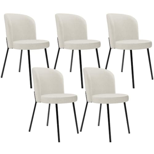 Kit 5 Cadeiras Sala De Jantar Estofada Gavi L02 Linho Champagne - Lyam Decor