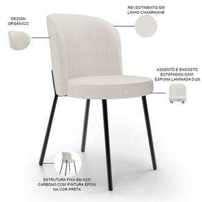 Kit 5 Cadeiras Sala De Jantar Estofada Gavi L02 Linho Champagne - Lyam Decor - Bege