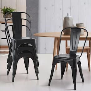 Kit 5 Cadeiras Tolix Iron Design Preto Fosco Aço Industrial Sala Cozinha Jantar Bar Cadeira Tolix Iron Design Cadeira Fixa Design Tolix Metal Preta Conhecida popularmente como Cadeira Francesinha, tem grande influência no mercado europeu devido ao seu elegante design retrô. O modelo clássico idealizado pelo francês Xavier Pauchard nos anos 20 foi resultado de seu experimento pioneiro da fabricação de móveis com metal galvanizado. A cadeira com formas simples, porém funcionais fez tanto sucesso que se tornou muito popular em fábricas, escritórios, restaurantes, bem como nos cafés, bares e parques públicos da época. Hoje conhecida como Cadeira Tolix, é um ícone da estética industrial, podendo ser utilizada em qualquer ambiente trazendo elegância e personalidade. Com estrutura em aço de carbono e acabamento em pintura eletrostática, pode ser utilizada em ambientes externos. Projetada com alguns furos em seu assento com a finalidade de não acumular água, facilitando sua limpeza e manutenção. A Cadeira Tolix é clássica, com design vintage e pode ser combinada com outros modelos de cadeiras. Disponível em variedade de cores, permitindo um ambiente mais descontraído.