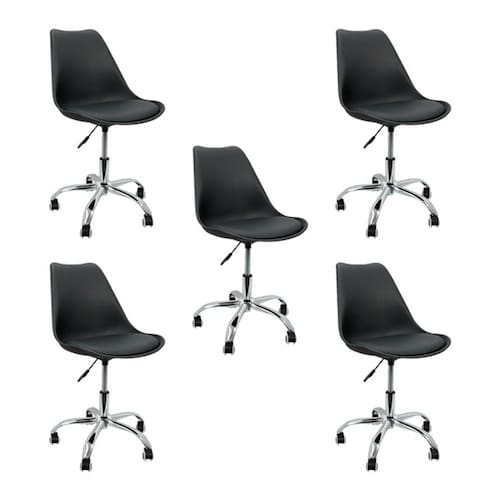 Kit 5 Cadeiras Tulipa Giratória, Home Office, Regulagem de Altura, Preto - Preto