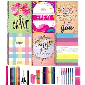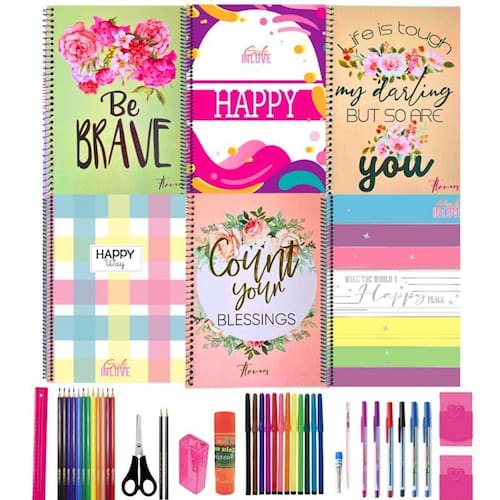 Kit 5 cadernos grande com pauta arame colegial universitário escolar todas com estampas diferentes meninas espiral 80 folhas capa dura reforçado 1 matéria com 40 materiais escolar
