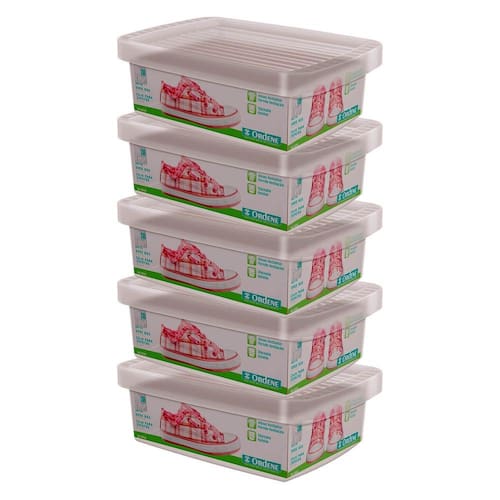 5. Empilhe as caixas por tipo de sapatos e por frequência de uso: Calçados de salto médio ou uso no trabalho, calçados de salto baixo ou sem salto, calçados de utilização em academias e caminhadas, calçados de festas.