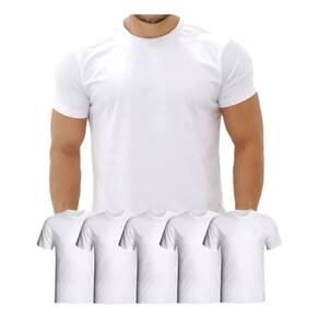 Kit 5 Camisetas De Poliéster/sublimática Gola Redonda Branca - Fúcsia - G