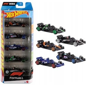 -Projetado para entusiastas de automóveis, este pacote com 5 homenageia o ápice das competições de corrida que é a Fórmula 1 e o principal fabricante de carrinhos de brinquedo que é a Hot Wheels.