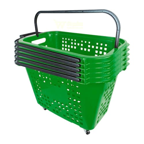 Kit com 5 Cestas de Compras Plásticas com Rodas e capacidade de 40 litros na cor Verde. As Cestas de Compras com Rodas é um item essencial para facilitar as compras, combinando praticidade e durabilidade. Podem ser usadas em uma infinidade de situações, como em supermercados, mercearias, padarias, farmácias, lojas de conveniência, de departamento e muito mais. Ideal para estabelecimentos comerciais que desejam oferecer praticidade aos clientes, poupando espaço. Com uma capacidade e 40 litros, esta cesta oferece espaço mais do que suficiente para compras diárias ou semanais. Equipada com Rodízios Resistentes, a cesta desliza suavemente sobre diferentes superfícies, tornando o transporte das compras mais conveniente do que nunca. A roda possui um movimento completo de 360°, permitindo uma manobrabilidade superior em corredores estreitos e áreas congestionadas. Fabricada em resina plástica de alta resistência, nossa cesta é incrivelmente resistente e durável, garantindo o uso por um longo período de tempo sem preocupações. Possui duas alças ergonômicas e super resistentes, proporcionando conforto ao transportar suas compras mesmo quando totalmente carregada. Uma alça para utilizar na mão e outra utilizada para puxar. Sua estrutura foi projetada para permitir o encaixe e empilhamento fácil de múltiplas cestas, otimizando o espaço durante o armazenamento ou transporte. Esta cesta possui sua Cor Verde e as alças em preto. Com suas características cuidadosamente projetadas, ela se torna um produto essencial e exclusivo para o seu mercado, supermercado e diversos outros estabelecimento. Combinando funcionalidade e estilo, ela é a escolha ideal para tornar as idas ao mercado mais eficientes e agradáveis. - Devido a máteria prima das nossas cestas se tratarem de máteria sustentável, pode apresentar tonalidades de cores diferentes de um lote para outro.