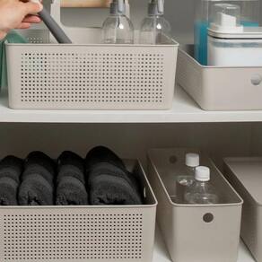 Os cestos organizadores com alça multiuso 6,6L da Ou, são itens versáteis que se adaptam a diversos ambientes como quarto, cozinha, lavanderia, banheiro e escritório. São ideais para armazenar roupas, utensílios domésticos, brinquedos, produtos de limpeza e outros itens, mantendo os espaços organizados. Com um design delicado e leve, estes cestos adicionam elegância, praticidade e facilidade ao carregar. Feito de material resistente e durável, é projetado para uso diário. Possui ventilação adequada através de furinhos estrategicamente posicionados, o armazenamento mantem os itens frescos e evita a acumulação de umidade.