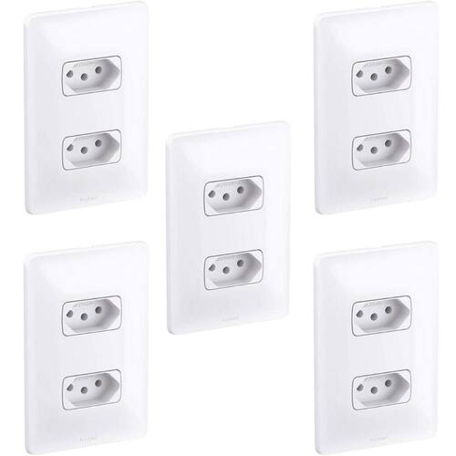 Da marca Legrand. Produto feito em termoplastico na cor Branco brilhante, com tensão nominal de 250V e corrente nominal de 10A. Conjunto de 2 tomada de 10A para alimentação de circuitos elétricosProduto Pratico de fácil instalação e excelente qualidade.Em acordo com norma ABNT NBR 14136 2P+T Kit com 5 unidades.- Qual a diferença entre o simples e o paraleloR: A principal diferença entre um simples e um é o número de pontos de controle de uma luz. A simples permite ligar e desligar uma luz a partir de um único ponto de controle, o permite ligar e desligar uma luz a partir de dois ou mais pontos de controle diferentes.