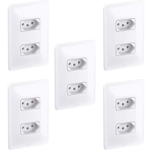 Da marca Legrand. Produto feito em termoplastico na cor Branco brilhante, com tensão nominal de 250V e corrente nominal de 10A. Conjunto de 2 tomada de 10A para alimentação de circuitos elétricosProduto Pratico de fácil instalação e excelente qualidade.Em acordo com norma ABNT NBR 14136 2P+T Kit com 5 unidades.- Qual a diferença entre o simples e o paraleloR: A principal diferença entre um simples e um é o número de pontos de controle de uma luz. A simples permite ligar e desligar uma luz a partir de um único ponto de controle, o permite ligar e desligar uma luz a partir de dois ou mais pontos de controle diferentes. Marca: Não Informado