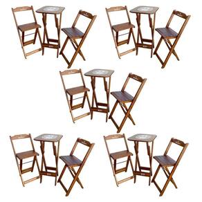 Kit 5 Conjuntos Bistrô Mesa Com 2 Banquetas Dobráveis De Madeira Personalizada Hei - Imbuia