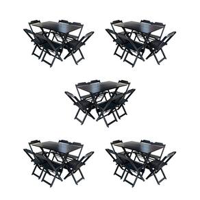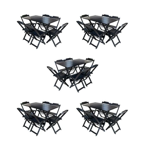 Kit 5 Conjuntos De Mesa Dobravel Com 6 Cadeiras De Madeira 120x70 Para Restaurante E Bar - Preto