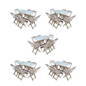 Kit 5 Conjuntos De Mesa Dobravel Com 6 Cadeiras De Madeira 120x70 Para Restaurante E Bar- Sem Pintura O produto é ideal para bares, restaurantes, estabelecimentos, áreas de lazer e também para sua casa. Feito em madeira maciça, tornando resistentes e duráveis. Seu design permite que seja encaixado em qualquer ambiente, trazendo um toque a mais para seu estabelecimento. Além de sua durabilidade, o que lhe trará conforto para servir seus clientes. Por ser dobrável torna-se mais fácil guardar, manusear e limpar o produto.