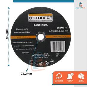 O Disco de Corte para Aço Inox da marca Starfer é uma ferramenta de alta qualidade projetada para cortes precisos em materiais de aço inoxidável. Com suas dimensões de 9 polegadas de diâmetro, 7/8 de polegada de furo central e 2mm de espessura, e uma velocidade máxima de 6.600 RPM a 80m/s, atende às normas NBR 15.230, garantindo qualidade e segurança. Ideal para aplicações industriais e profissionais, oferece cortes eficientes e limpos, sendo uma escolha confiável para projetos que exigem resultados excepcionais em corte de aço inoxidável.CARACTERÍSTICAS TÉCNICAS:Medidas: 9" x 7/8" - 230mm (diâmetro) x 22,2mm (diâmetro do furo) x 2,0mm (espessura)Rotação máxima: 6.600RPM - 80m/sNBR 15.230Quantidade: 5 unidadesRef.: 8271046Marca.: Starfer