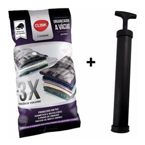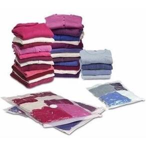 Kit 5 Embalagens a Vácuo, 3x Mais Espaço no Seu Guarda Roupa e Mala Com Bomba De SucçãoQuantidade: 5 unidades Tamanho: 50 x 60cm Utiliza com seu aspirador de pó ou com a Bomba de sucção que acompanha esse kit. Produzido em pvc Hermético e reutilizável À prova de umidade Protege de mofo e odores Otimiza o espaço em sua mala ou guarda-roupas em até 3 x mais Modo de usar: 1 Insira na embalagem edredons, travesseiros, cobertores, casacos ou qualquer item que você desejar guardar e proteger. As peças devem ser totalmente secas, limpas e ocupar o espaço da embalagem até a linha pontilhada do zíper de fechamento. 2 Use um pano úmido para limpar o zíper de fechamento e coloque o feixe de plástico para instalá-lo. 3 Abra a válvula e encaixe seu aspirador de pó ou a bomba de sucção que acompanha nesse kitVantagens do produto- Proteger seu casaco, cobertor, roupas, edredons e etc de mofo, poeira e umidade. - Reduz em até 3 vezes o espaço da sua mala e guarda-roupa - Você pode reutilizar várias vezes - Protege suas roupas de odores fortes - Evitar que as roupas se danifiquem ao passar do tempo