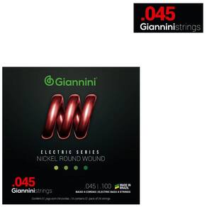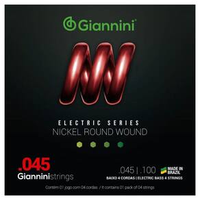 Kit 5 Encordoamento Baixo Giannini Electric GEEBRS Nickel 4c 0.045"A série Electric traz toda a sonoridade dos encordoamentos Giannini para a sua guitarra e contrabaixo. O encordoamento para baixo 04 cordas Giannini GEEBRS é composto de um núcleo de aço revestido por Níquel. O Níquel produz um som brilhante e agressivo que atende grandes variedades de estilos musicais, sendo bem resistente a oxidação e corrosão.