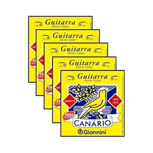 Kit 5 Encordoamento Guitarra Giannini Canário GESGT9 0.009 Aço