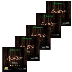 KIT 5 ENCORDOAMENTO VIOLÃO AÇO GIANNINI GESWAM ACÚSTICO 010