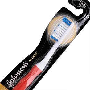 Maior alcance para limpar as partes mais difíceis da boca. Johnson's Access foi desenvolvida para acessar as partes mais difíceis da boca. Seu cabo angulado proporciona maior alcance e o tufo frontal de suas cerdas é ideal para limpar os dentes do fundo. Além disso, possui cabo emborrachado para maior controle durante a escovação.