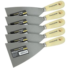 Kit 05 Espátulas Tradestar com Cabo de Madeira - 10 cm