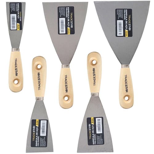 Espátula Tradestar 10cm: Ideal para aplicar e alisar massa corrida em áreas mais amplas.