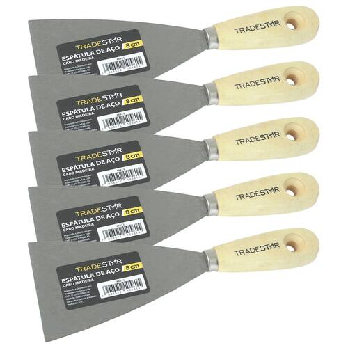 Kit 05 Espátulas Tradestar com Cabo de Madeira - 8 cm