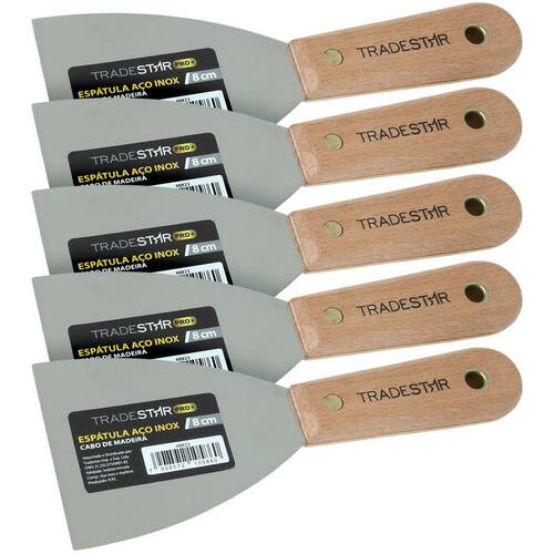 Kit 05 Espátulas Inox Tradestar com Cabo de Madeira - 8 cm