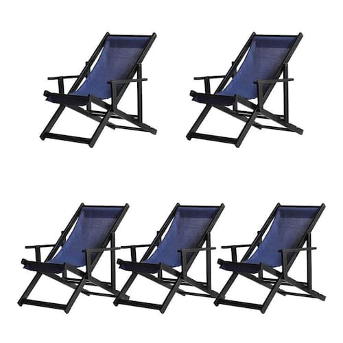 Kit 5 Espreguiçadeiras Dobrável Black Cb-azul Escuro 5 ESPREGUIÇADEIRAS ENVERNIZADAS BLACK C/BSabe aquele final de tarde que você tanto espera para tirar um descanso merecido? Ou aquela viagem para a praia programada a meses com a família? Pois é, nossas cadeiras espreguiçadeira serve exatamente para esses momentos, com várias opções de cores, os tecidos além de charmosos são hidro-repelentes e se adequam a qualquer ambiente, facilmente removíveis para higienização.Estrutura 100% de madeira maciça e verniz especial, que garante sua qualidade e durabilidade, a espreguiçadeira é totalmente dobrável e reclinável (4 posições de ângulo), com descanso para braço, sendo possível montar invertida sem o encosto de braço, perfeita para seu lazer em todos os ambientes, seja ele externo ou interno, esse é o item que definitivamente não pode faltar na vida de quem de fato, quer aproveitar bons momentos! FICHA TÉCNICA DO PRODUTO:04 Níveis de Regulagem de Altura;Tecido Reforçado;Fabricada em Madeira Maciça Pinus;Peso aproximado: 7,5 Kg;Suporta aproximadamente 120 kg;Cor da Madeira: Preta Dimensões aproximadas do Produto:Altura 1: 69 cm;Altura 2: 82 cm;Altura 3: 91 cm;Altura 4: 100 cm;Profundidade: 105 cm. Dimensão aproximada total:Comprimento: 135 cm;Largura: 66 cm; Informações Adicionais:Garantia: 90 dias contra defeitos de fabricação.Acompanha 5 cadeiras Obs. A cor pode variar da foto conforme a tonalidade da madeira e iluminação.. !! Marca: Brasil Móveis