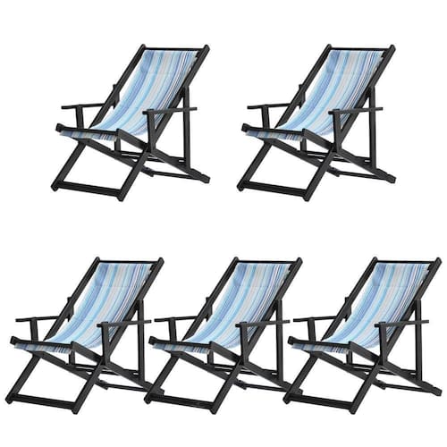 Kit 5 Espreguiçadeiras Dobrável Black Cb-listras Azuis