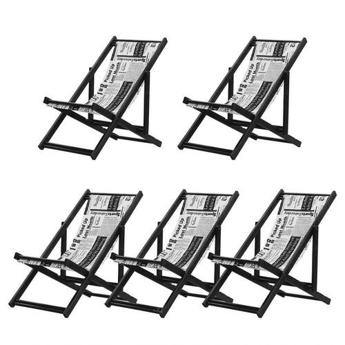 Kit 5 Espreguiçadeiras Dobrável Black Sb-jornal 5 ESPREGUIÇADEIRAS ENVERNIZADAS BLACK S/BSabe aquele final de tarde que você tanto espera para tirar um descanso merecido? Ou aquela viagem para a praia programada a meses com a família? Pois é, nossas cadeiras espreguiçadeira serve exatamente para esses momentos, com várias opções de cores, os tecidos além de charmosos são hidro-repelentes e se adequam a qualquer ambiente, facilmente removíveis para higienização.Estrutura 100% de madeira maciça e verniz especial, que garante sua qualidade e durabilidade, a espreguiçadeira é totalmente dobrável e reclinável (4 posições de ângulo), perfeita para seu lazer em todos os ambientes, seja ele externo ou interno, esse é o item que definitivamente não pode faltar na vida de quem de fato, quer aproveitar bons momentos! FICHA TÉCNICA DO PRODUTO:04 Níveis de Regulagem de Altura;Tecido Reforçado;Fabricada em Madeira Maciça Pinus;Peso aproximado: 7,5 Kg;Suporta aproximadamente 120 kg;Cor da Madeira: PretaAcabamento: Envernizada Dimensões aproximadas do Produto:Altura 1: 69 cm;Altura 2: 82 cm;Altura 3: 91 cm;Altura 4: 100 cm;Profundidade: 105 cm. Dimensão aproximada total:Comprimento: 135 cm;Largura: 60 cm; Informações Adicionais:Garantia: 90 dias contra defeitos de fabricação.Acompanha 5 cadeiras Obs. A cor pode variar da foto conforme a tonalidade da madeira e iluminação..