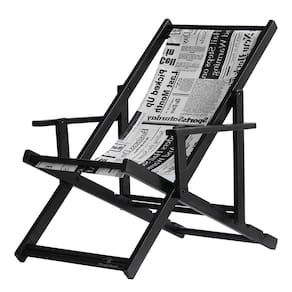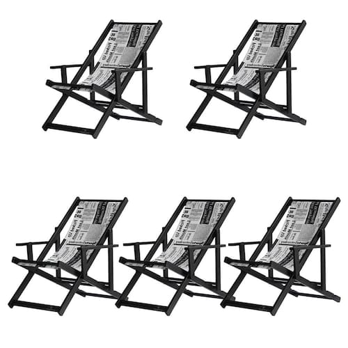 Kit 5 Espreguiçadeiras Preguiçosa Dobrável Envernizada Black em Madeira Maciça com Tecido - Off White