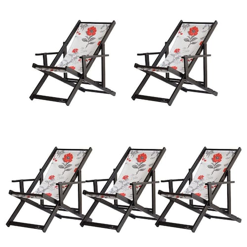 Espreguiçadeira reclinável com 4 posições, fabricada em madeira maciça eucalipto com acabamento envernizado. Dobrável, resistente (suporta até 100kg) e com tecido hidro-repelente removível para fácil limpeza. Ideal para praia, piscina ou varanda.