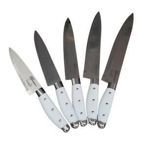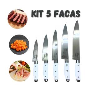 Kit com 5 facas de cozinha de 5 à 9 polegadas cabo branco