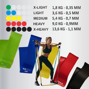 1 caixa contendo 5 faixas elásticas com intensidades variadas