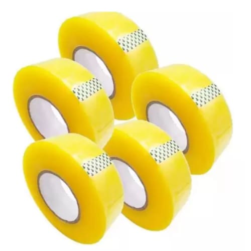 Kit 5 Fitas Adesiva Transparente Amarela 200 metros Embalar