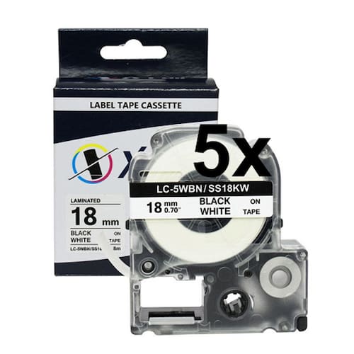 Kit 5 Fitas Compatível Epson LC5WBN Branca Letra Preta 18mm