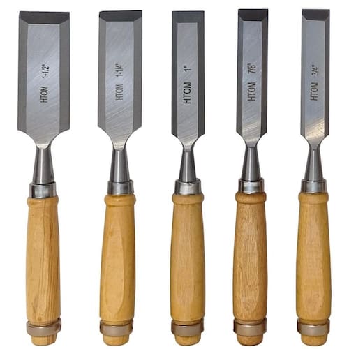 Kit 5 Formão para Entalhe 19 a 38mm Aço Forjado Profissional jogo de formões goivas para entalhe em Madeira para HTOM. Lâminas fabricadas em especial para maior durabilidade e resistência. - Marca: HTOM - Referência: HTOM-F52 - 1 Formão 3/4 Pol. 19mm - 1 Formão 7/8 Pol. 22mm - 1 Formão 1 Pol. 25mm - 1 Formão 1-1/4 Pol. 32mm - 1 Formão 1-1/2 Pol. 38mm - Comprimento Total: 240mm - Comprimento da Lâmina: 90mm - Espessura da lâmina: 4,5mm - Lâmina Fabricada em aço forjado de alta resistência e durabilidade - Lâminas fabricadas em especial para maior durabilidade e resistência. - Lâminas chanfradas, polidas - O formão é Utilizado para recortar e aparar pedaços de madeira. É muito Utilizado no ajuste e nos encaixes das peças de madeira que formam um móvel. - Cabo em madeira que proporcionam maior durabilidade e precisão na realização dos reparos - Indicada para uso em artesanatos, entalhes, molduras, esculpir madeira, resina, gesso, argila e trabalhos técnicos em escolas de arte - : 90 dias Ean: 7734625902106