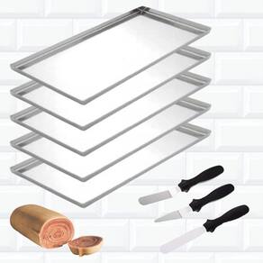 Kit 5 Formas Bolo De Rolo Rocambole 15X30X1 + Kit Espátulas