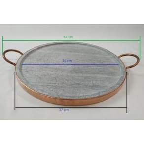 Diâmetro interno: 35 cm Diâmetro externo: 37 cm Com alças: 43 cm