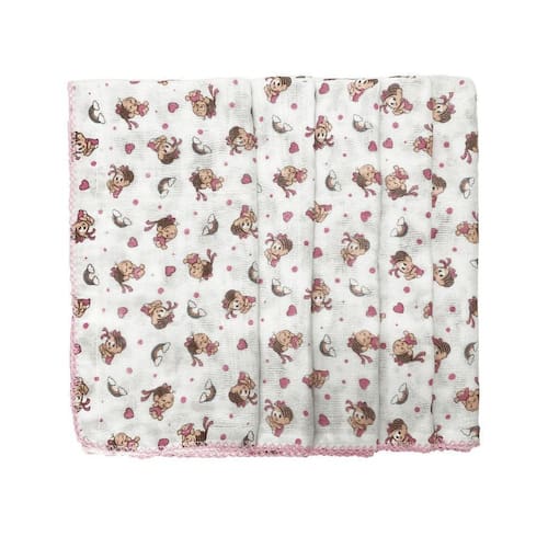 A Fralda Turma da Monica e uma excelente escolha para o dia a dia do seu bebe. Com tecido duplo 100% algodao, oferece maciez, alta absorcao e conforto. O acabamento com croche feito a maquina da um toque especial, tornando o produto ainda mais delicado e elegante.